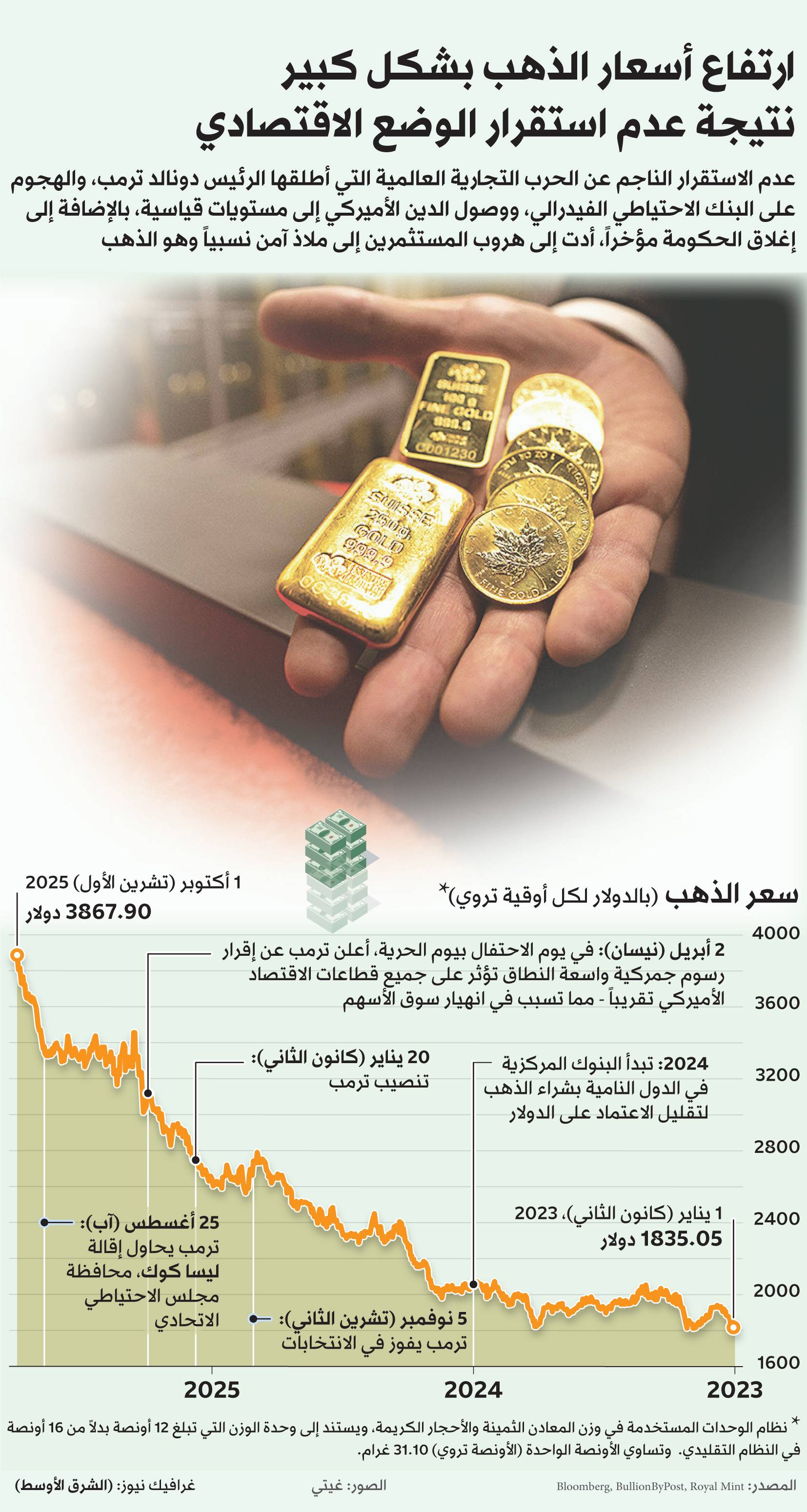 وكانت التقديرات السابقة تُشير إلى أنه إذا جرى تقويض استقلالية «الاحتياطي الفيدرالي» تحت ضغط من الرئيس دونالد ترمب، فقد ترتفع أسعار الذهب إلى 5 آلاف دولار. أما في أسوأ السيناريوهات، أي اهتزاز الثقة بـ«الاحتياطي الفيدرالي»، فقد يتجه المستثمرون إلى سحب أموالهم من سندات الخزانة الأميركية -بوصفها ملاذاً آمناً- وتحويلها إلى الذهب.