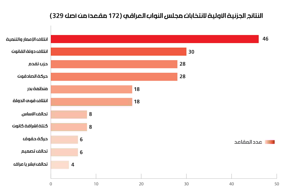 ووفق معطيات حصلت عليها «الأخبار» من مصادر سياسية ووسطاء داخل القوى الكبرى، فإنّ السوداني، تمكّن من حصد أكثر من 250 ألف صوت، ومن المتوقّع أن تتجاوز كتلته 50 مقعداً في البرلمان المكوّن من 329 مقعداً، ما يجعلها من بين الأكبر شيعياً في التشكيلة الجديدة. ويقول المتحدّث باسم «ائتلاف الإعمار والتنمية»، محمد العكيلي، إنّ الائتلاف «حقّق فوزاً ساحقاً. والناس آمنت بمشروع السوداني الوسطي»، مضيفاً أنّ «الائتلاف حصد أصواتاً حتى في مناطق لا تُعدّ ضمن ثقله السياسي، بفضل الأداء الحكومي والخدمات التي قدّمها السوداني في أثناء السنوات الماضية». ويأمل العكيلي، في أن «تُشكّل الحكومة سريعاً، بعيداً من التجاذبات السياسية التي رافقت الدورات السابقة».