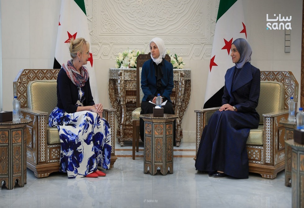 واستقبلت عقيلة الشرع، لطيفة الدروبي، في قصر الشعب عقيلة الأدميرال كوبر، وجرى الحديث حول القضايا الإنسانية والاجتماعية ذات الاهتمام المشترك، بما يعكس دور المرأة في بناء جسور التفاهم بين الشعوب.