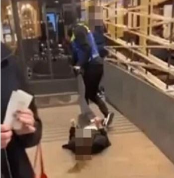 وثق مقطع فيديو صادم، لحظة توجيه حارس أمن بمطعم “ماكدونالدز” الشهير لكمة لوجه زبونة أردتها أرضا، ثم سحلها إلى خارج المحل.