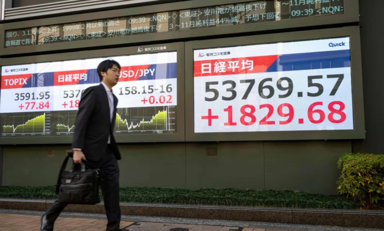 ارتفع مؤشر «نيكي» الياباني إلى مستوى قياسي يوم الثلاثاء، بينما انخفض الين إلى أدنى مستوى له على الإطلاق مقابل اليورو والفرنك السويسري؛ حيث راهن المستثمرون على مزيد من التحفيز المالي، وسط تقارير تفيد بأن الحكومة قد تدعو إلى انتخابات مبكرة الشهر المقبل. كما تراجعت السندات الحكومية اليابانية، مما دفع عوائد السندات لأجل 20 عاماً إلى مستوى قياسي. وارتفع مؤشر «نيكي» بنسبة تصل إلى 3.6 في المائة، مسجلاً مستوى قياسياً خلال اليوم بلغ 53.814.79 نقطة. وأنهى المؤشر تداولات اليوم مرتفعاً بنسبة 3.1 في المائة عند مستوى إغلاق تاريخي بلغ 53.549.16 نقطة. كما سجل مؤشر «توبكس» الأوسع نطاقاً ذروة خلال اليوم، وأغلق مرتفعاً بنسبة 2.4 في المائة.