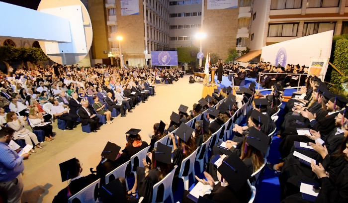 في الختام وزَع هايدوستيان وعمداء الجامعة الدكتور فادي عسراوي والدكتورة آردا أكمكجي الشهادات على الخريجين والجوائز على المتفوقين.