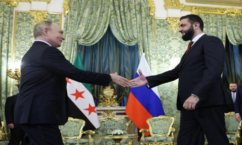 شكّل اللقاء بين الرئيس أحمد الشرع ونظيره الروسي بوتين حجر الزاوية في هذه الزيارة، بالنظر إلى أن كلّاً منهما أوضح تصوّره لمستقبل العلاقات الثنائية، فأوضح الشرع محدّدات النهج السوري الجديد القائم على الندّية والاحترام الكامل للسيادة، والساعي إلى إعادة تنظيم العلاقة لتصبّ بشكل واضح ومباشر في مصلحة سورية والسوريين، وتلبية تطلّعاتهم، بعد أن عاشوا سنوات طويلة من الحروب، وعانوا من الاستبداد والقهر، إضافة إلى العزلة الدولية التي عانتها سورية نتيجة سياسات المحاور والتبعية التي انتهجها نظام الأسد.