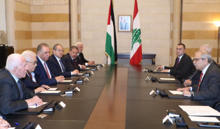 وعن الجانب الفلسطيني امين سر اللجنة التنفيذية لمنظمة التحرير الفلسطينية عزام الاحمد ، السفير الفلسطيني في لبنان اشرف دبور ، عضو اللجنة التنفيذية لمنظمة التحرير الفلسطينية الدكتور احمد مجدلاني، مستشار الرئيس عباس للشؤون الدبلوماسية الدكتور مجدي خالد، سفير فلسطين لدى الامم المتحدة الدكتور رياض منصور، امين سر حركة “فتح” وفصائل منظمة التحرير الفلسطينية في لبنان فتحي أبو العردات، إلى جانب المستشارين ياسر عباس ووائل لافي.