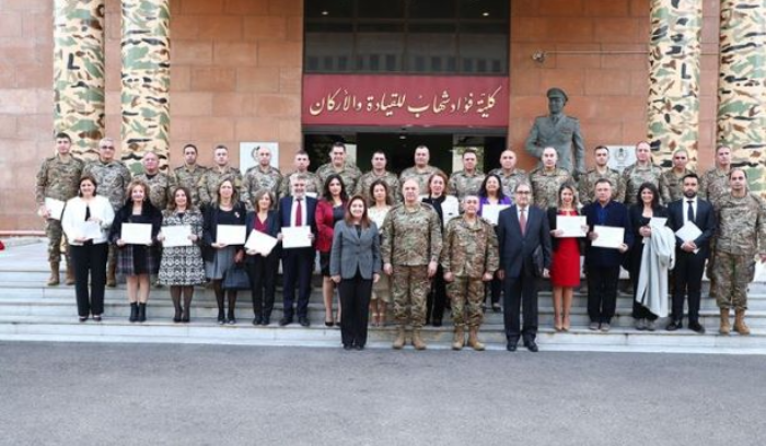 أقيم اليوم في كلية فؤاد شهاب للقيادة والأركان، بحضور قائد الجيش العماد جوزاف عون، حفل تخريج دفعة جديدة من دورة: “مدراء مؤهلون لمكافحة الفساد”، التي تنظمها “جمعية مدراء مؤهلون لمكافحة الفساد في لبنان”، بالتنسيق مع المعهد الأميركي لمكافحة الفساد، وشارك فيها عدد من الضباط والمدنيين.