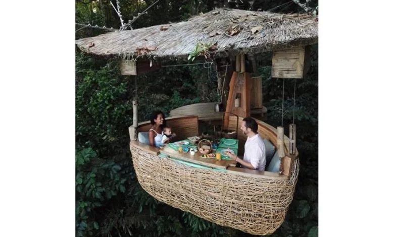 يقدم مطعم «عش الطيور» الذي يعد جزءاً من منتجع «سوفينا كيرل» في تايلاند، الفريد من نوعه، تجربة تناول الطعام داخل طاولات من الخوص شبيهة بأعشاش الطيور، وتتدلى هذه القرون المصنوعة من الخيزران الخاصة في قمم الأشجار على ارتفاع 16 قدماً فوق سطح الأرض، ويستطيع من يتناول الغداء في هذا المطعم مشاهدة الغابات الممطرة الرائعة والسواحل المحيطة به، فضلاً عن إطلالة منتجع سوفينا كيرل الفاخر.