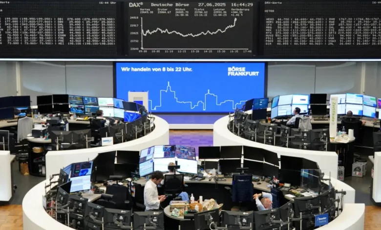 مكاسب محدودة للأسهم الأوروبية قبل انتهاء مهلة الرسوم